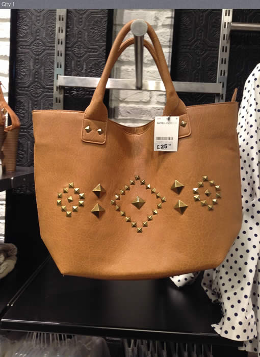 Tan studded large shoulder bag